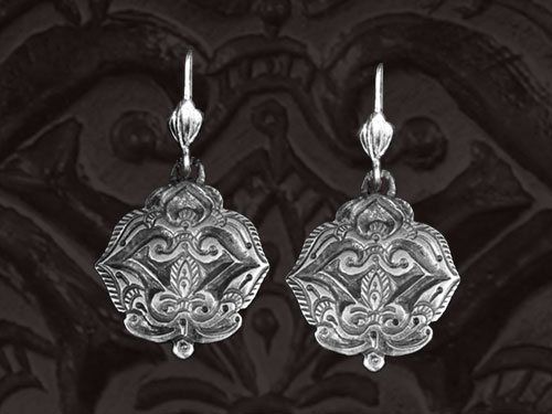 77. függő Díszítését két, egymásra támaszkodó palmettacsokor alkotja, melyeket poncolt,satírozott szegélyű levelek kereteznek. Veretként funkcionált.