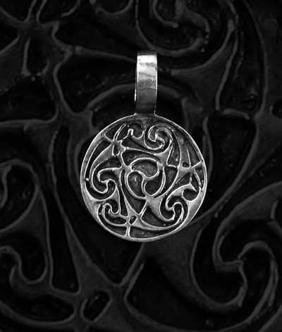 55. medál 18mm Kör alakú, ősi kelta motívumokat életre keltő, áttört mintázatú medál.