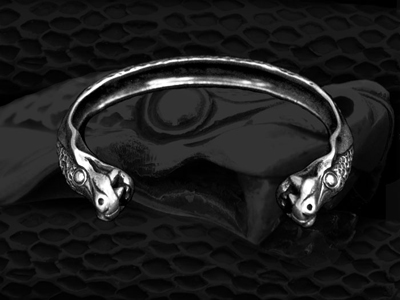 7. karkötő Merev "bebújós" karkötő, a germán ábrázolásokból ismert sárkányfejekkel.