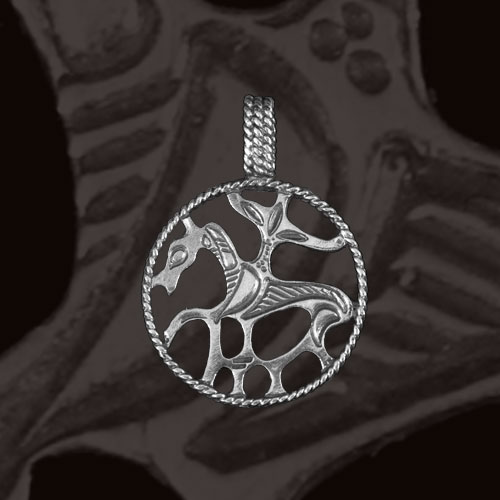 Balra néző stilizált ló,hátából háromágú palmetta indul, az életfa jelképe. A megformázás átmenet a realistább és az egyszerűsitett ábrázolások között.